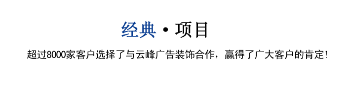 葫蘆島市云峰廣告裝飾有限公司自創立以來,一直致力于廣告牌的設計,噴繪,制作,安裝、LED工程、亮化工程、數碼圖文、圍擋制作安裝、三面翻廣告、大型擎天柱廣告、草坪牌、指示牌、雕刻背景墻、燈箱設計、標識標牌、金屬制品、亞克力字、展臺展柜、取款機隔斷、取款機隔斷等一體化服務,是葫蘆島市噴繪行業大規模實業公司。 歷經十年的磨礪,公司經營項目不斷拓展,從經營材料單一化轉向噴繪、設計、制作、安裝、室內外門臉裝修等來滿足市場客戶的需求,隨著市場的日益成熟,云峰人始終本著“腳踏實地”的經營作風,“誠實守信、互惠互利”的服務宗旨為您提供優質的服務......【了解更多】 |